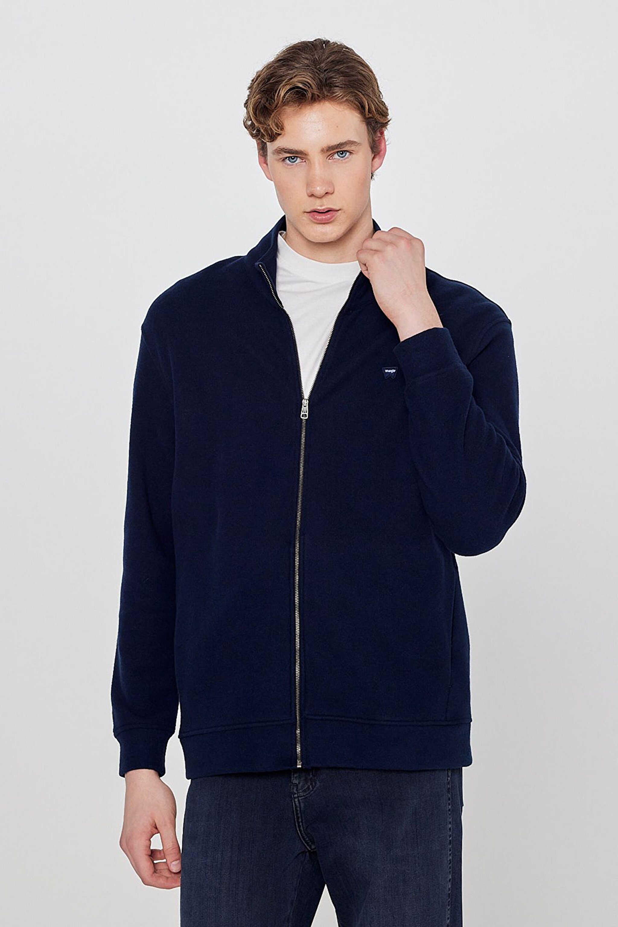 Pamuklu Relaxed Fit Dik Yaka Fermuarlı Selanik Örgü Sweatshirt